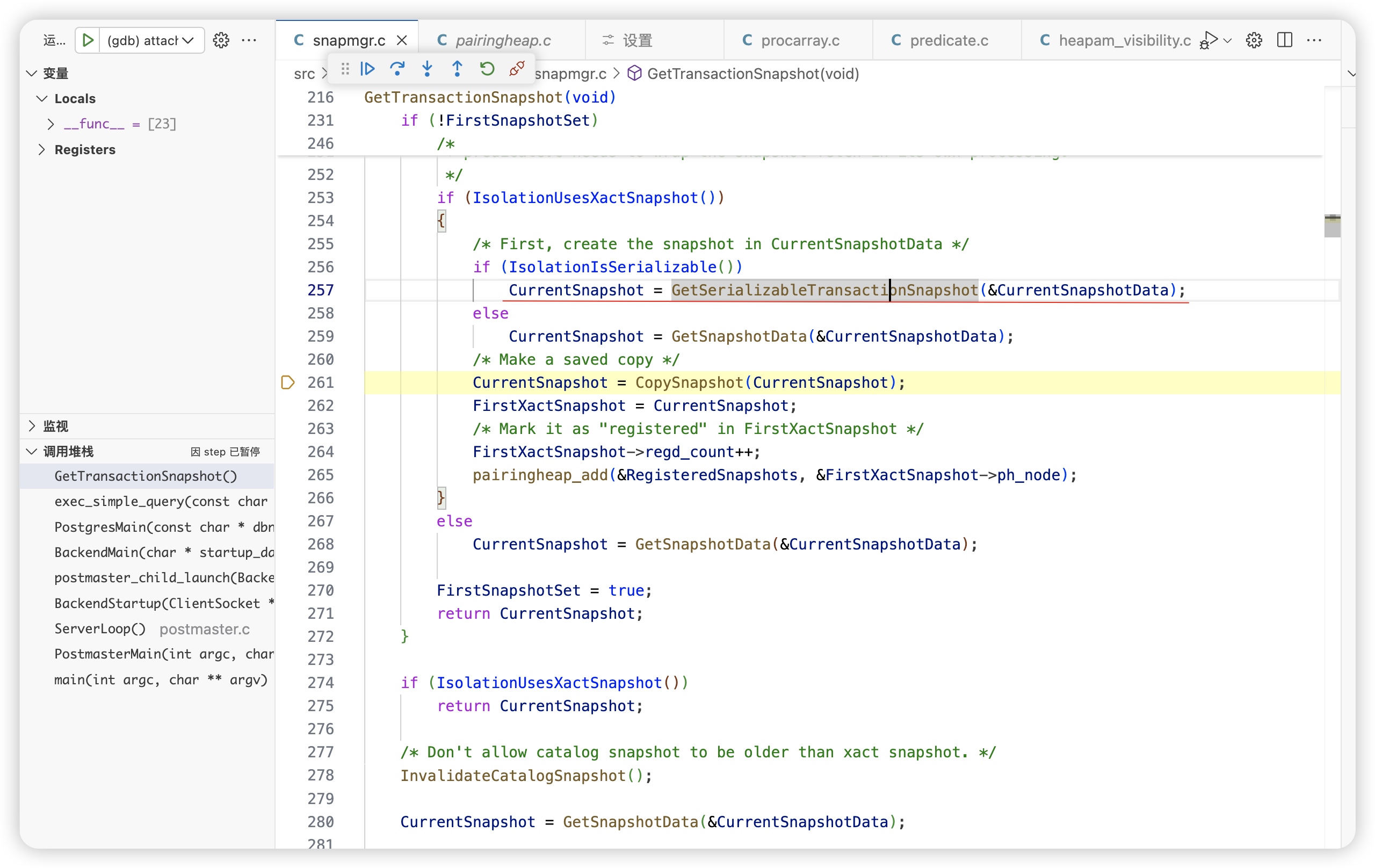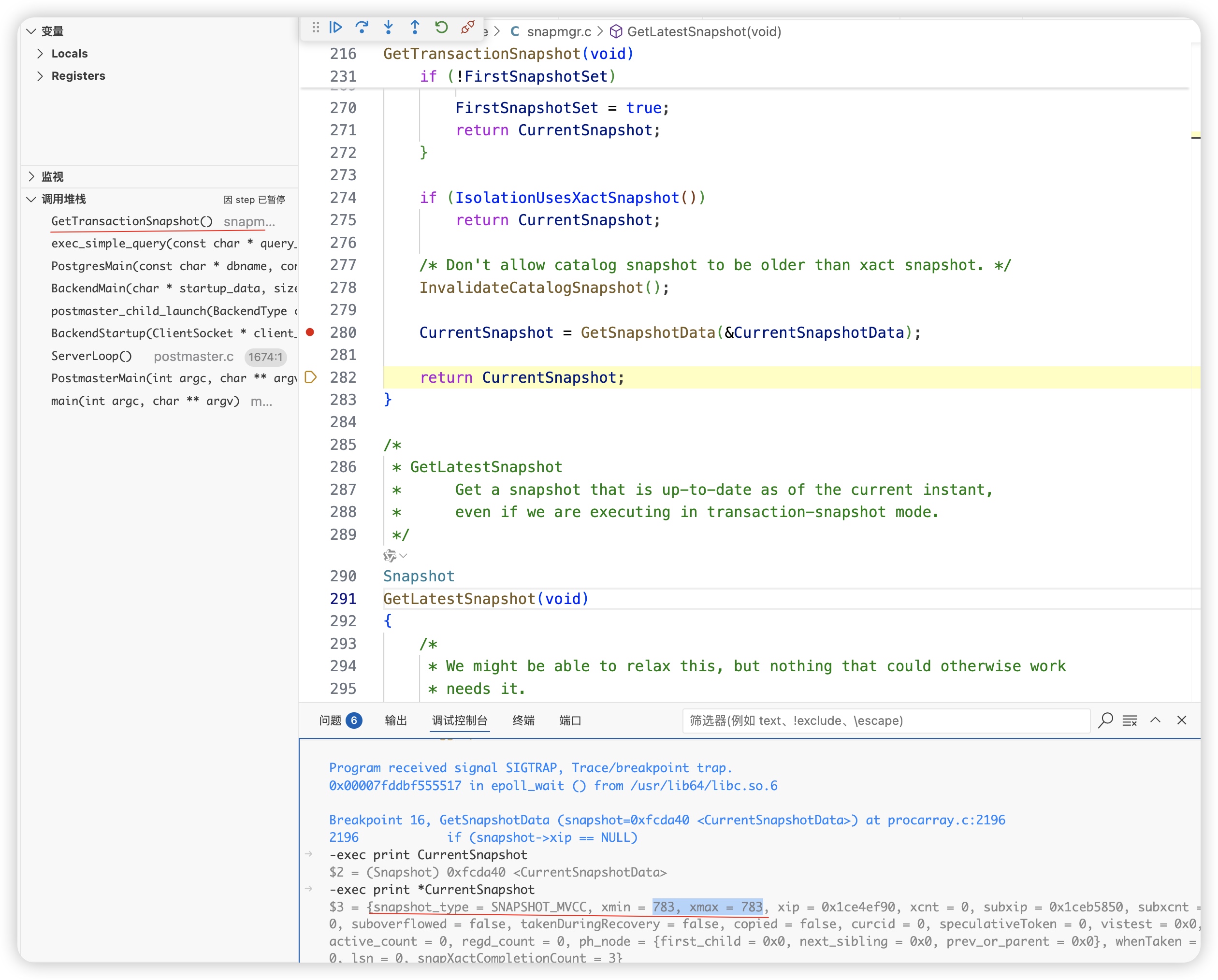 序列化隔离级别使用特殊的GetSerializableTransactionSnapshot 函数获取快照。GetSerializableTransactionSnapshot 是为 SERIALIZABLE 隔离级别设计的,具有更强的一致性保证,但性能开销较大;而 GetSnapshotData 更轻量,适用于大多数常规事务场景